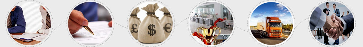 | 提出要求 | 确认图纸 | 交付定金 | 生产加工 | 安全配送 | 成功交付 |